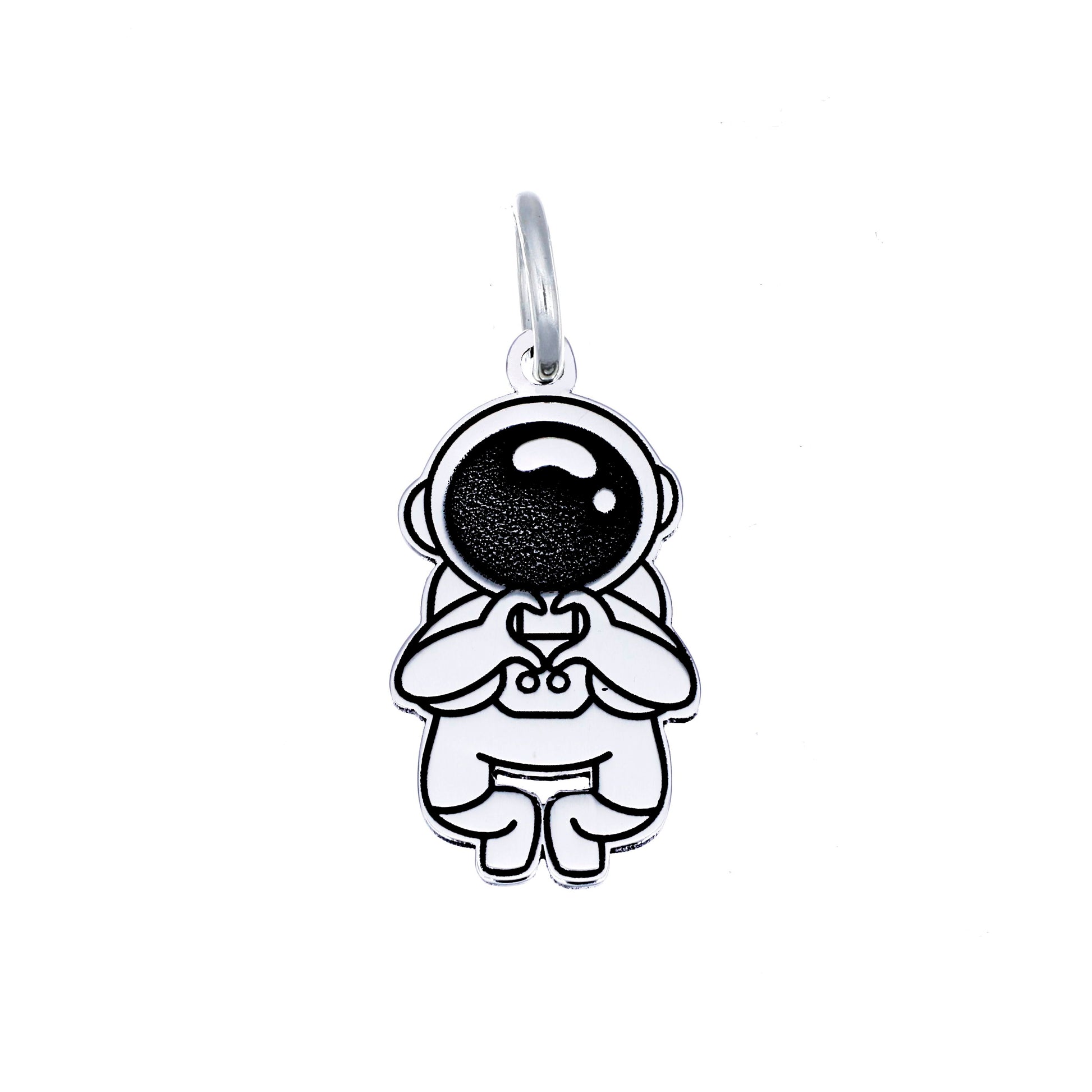Dije de Plata .925 en forma de Astronauta con Corazón en corte láser.