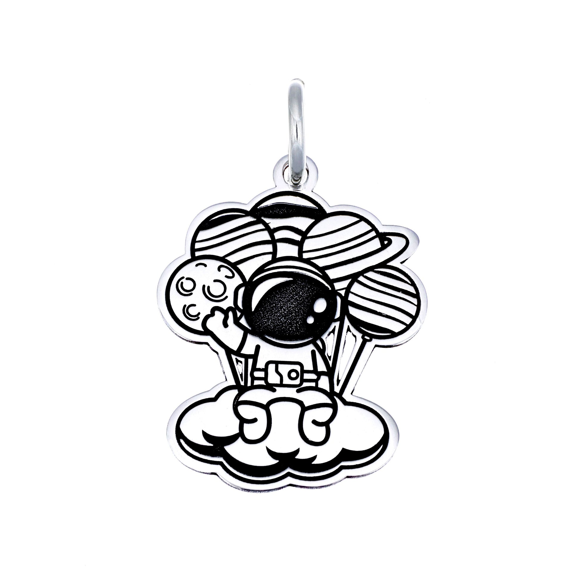 Dije de Plata .925 en forma de Astronauta con Planetas en corte láser.