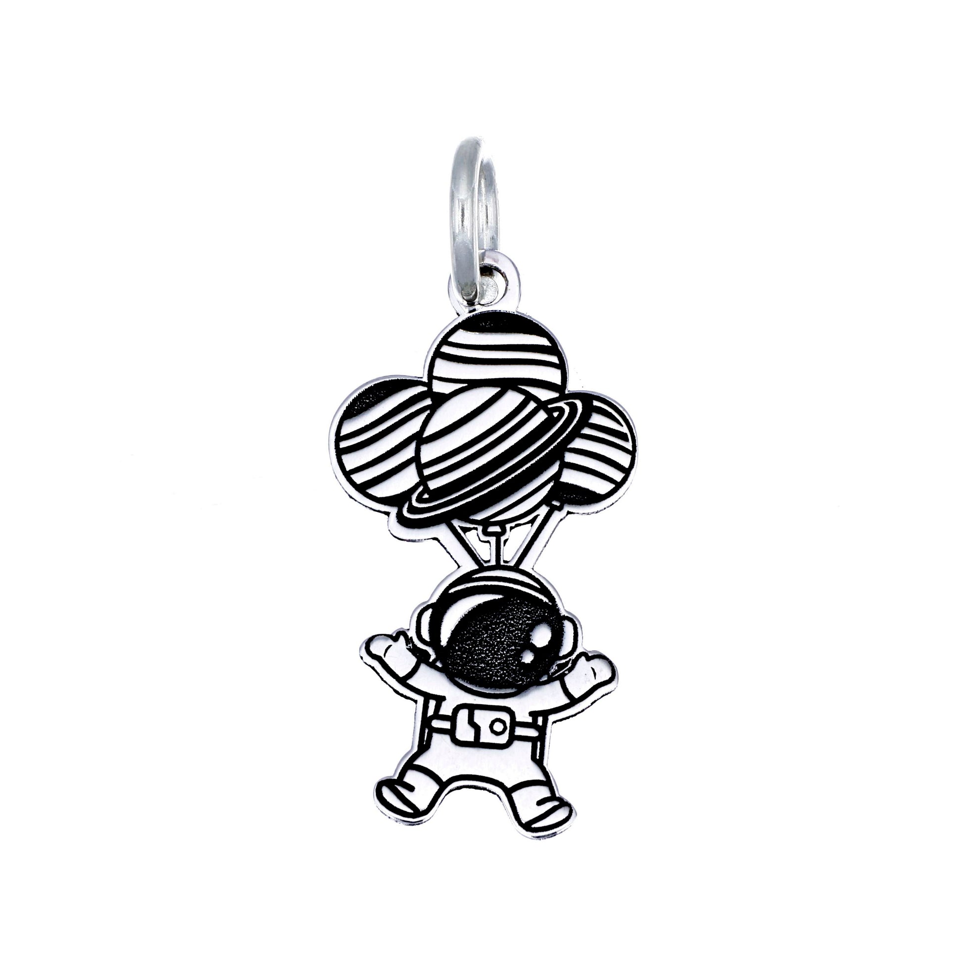 Dije de Plata .925 en forma de Astronauta volando con Planetas en corte láser.