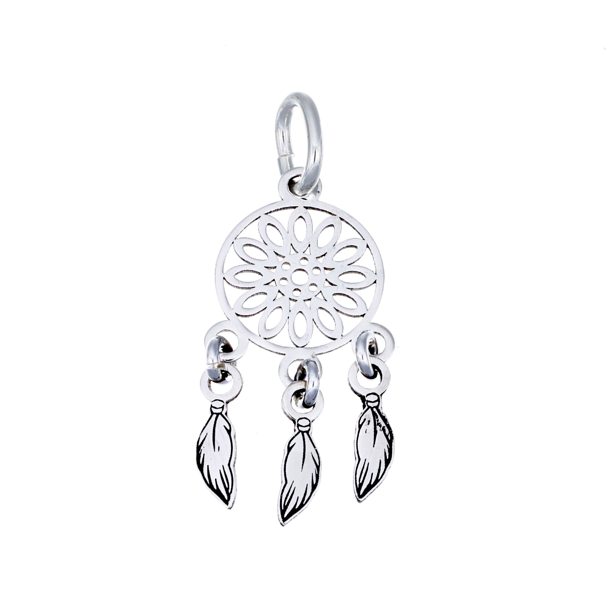 Dije de Plata .925 en forma de Atrapasueños en corte láser.