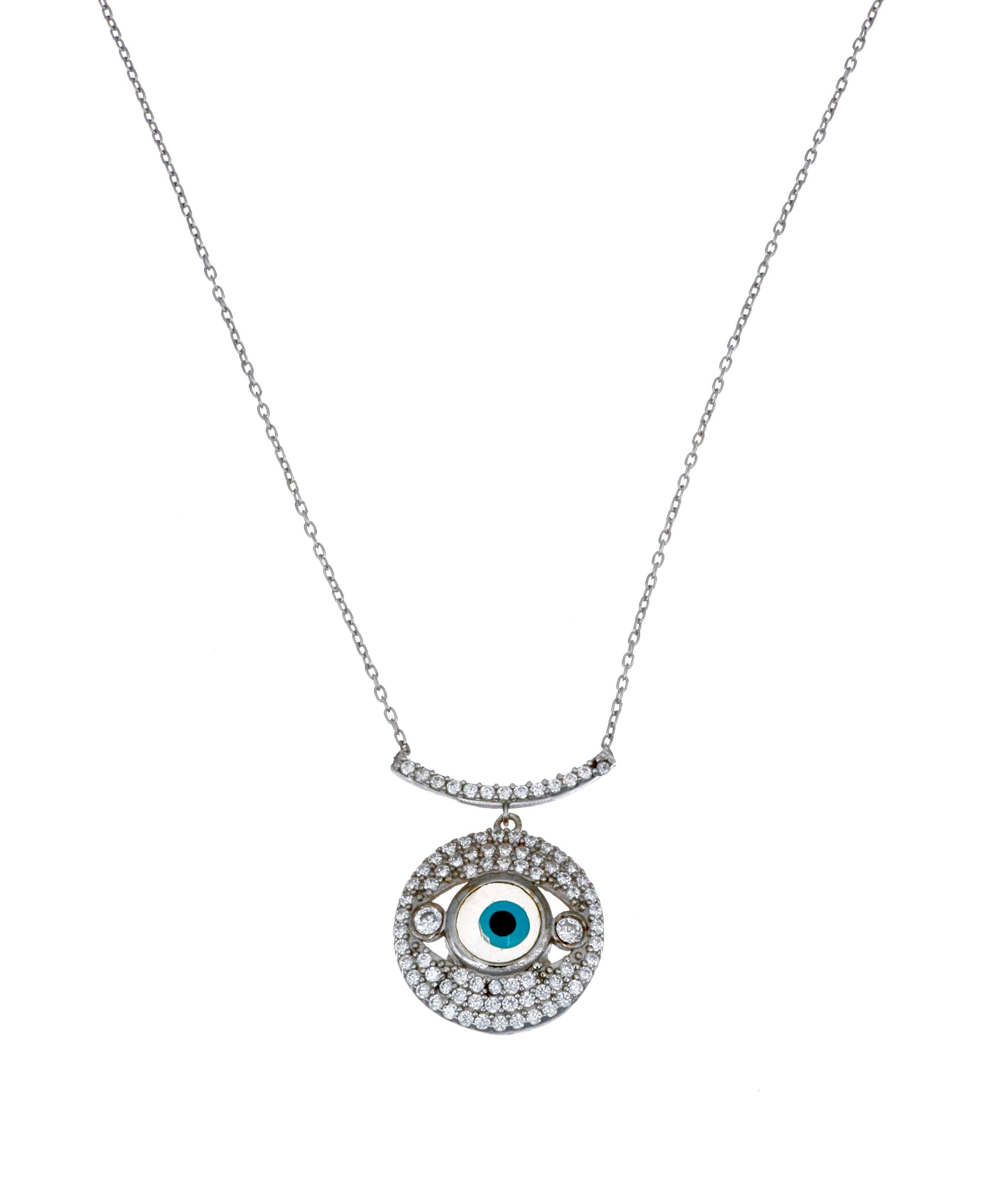 Collar de Plata .925 en forma de Ojo Turco en círculo con circonias blancas.