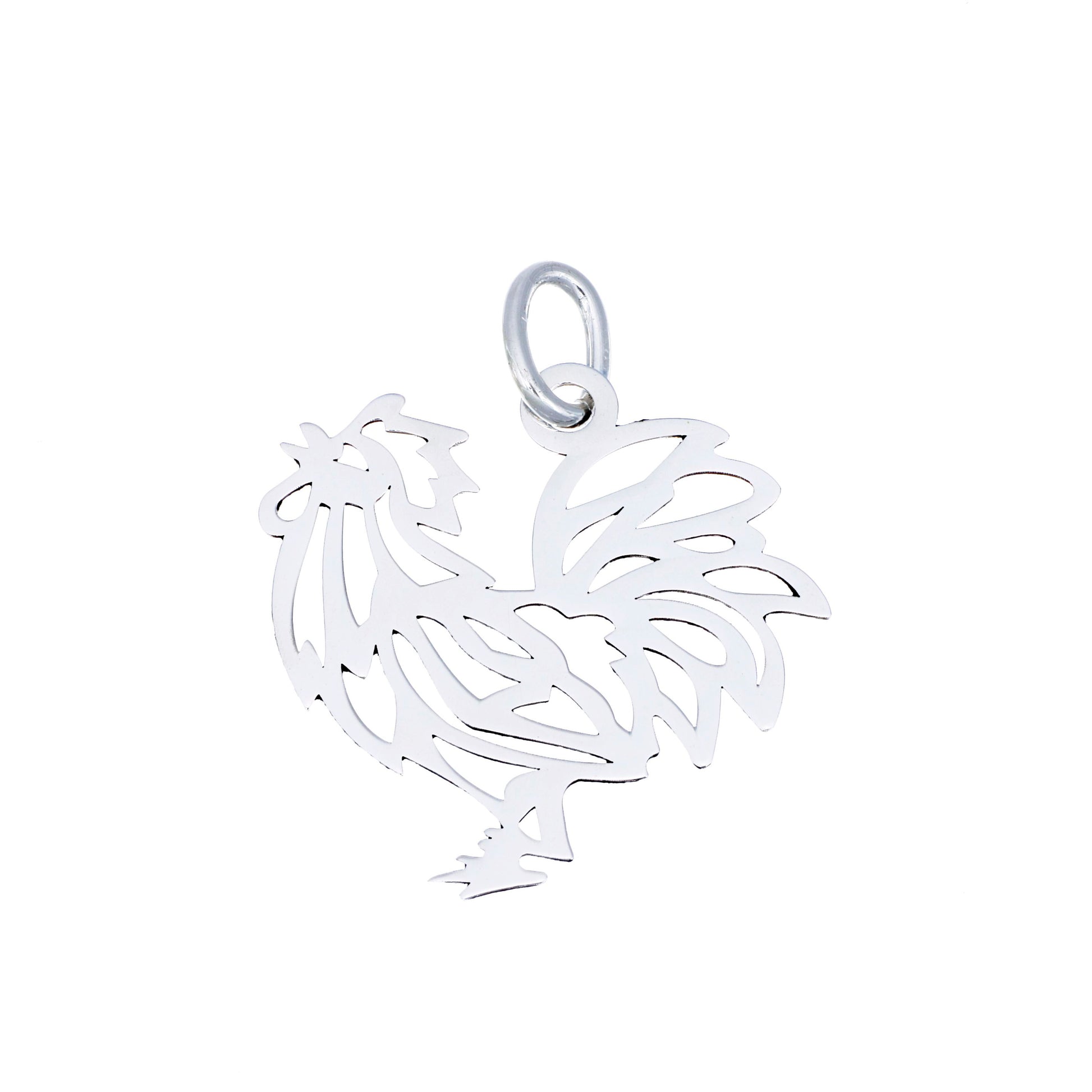Dije de Plata .925 en forma de Gallo Calado en corte láser.