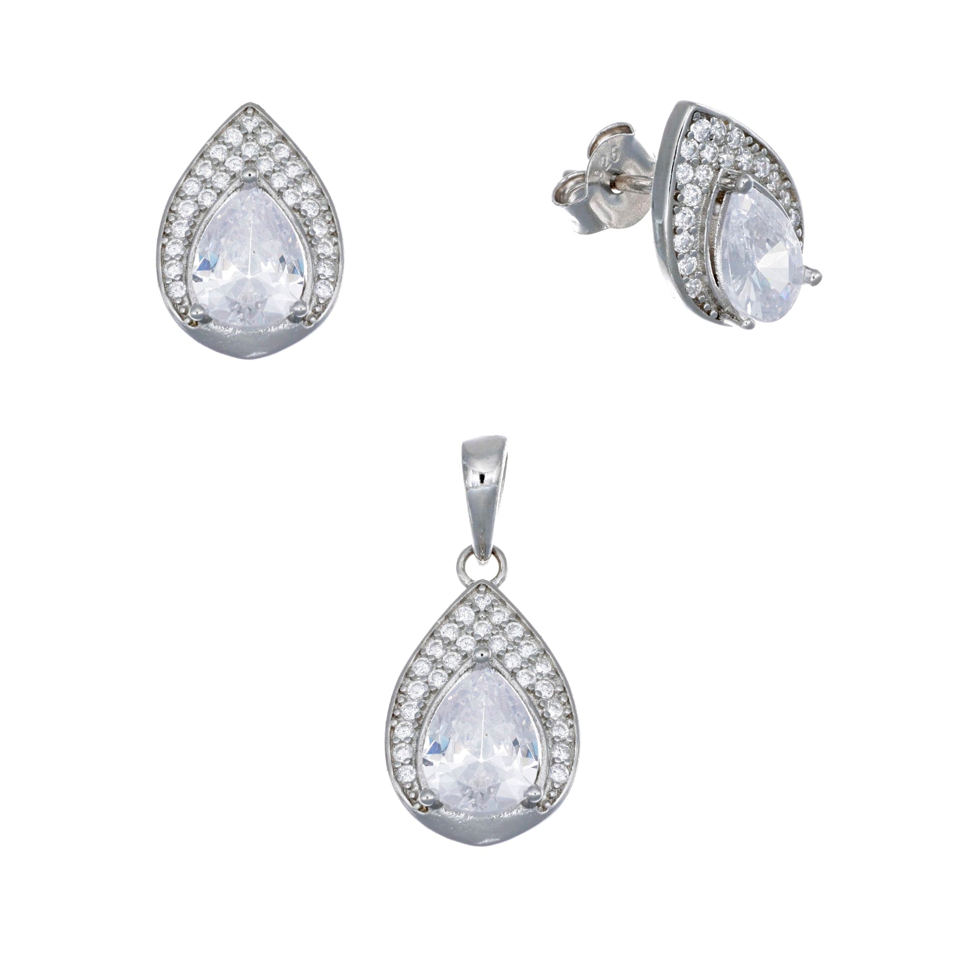 Juego de Plata .925 en forma de Gota con piedra y circonias blancas.